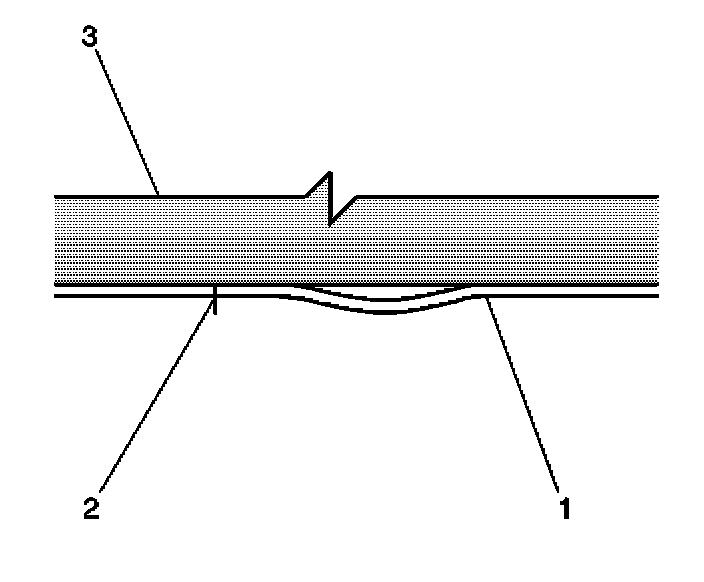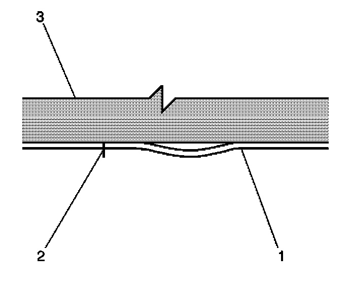 3. Start with the end of the weatherstrip (1) covering 77 mm (3.03 in) of the previously applied adhesive.