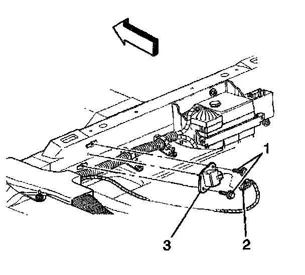 2. Install the 2 lateral accelerometer sensor mounting screws (1).