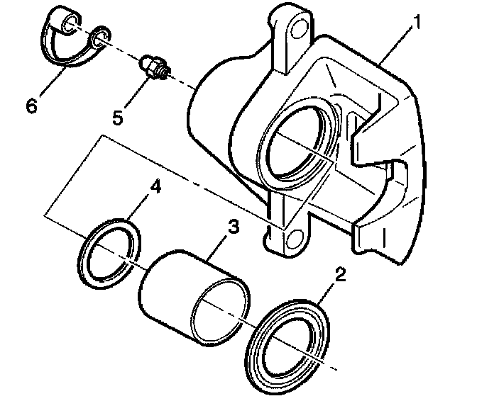 4. Using a small wooden or plastic tool, remove the piston seal (4) from the caliper bore and discard the piston seal.