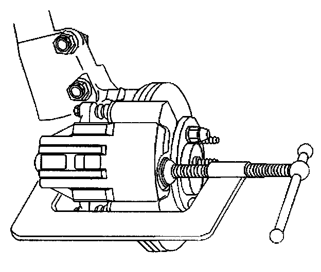 7. Install a large C-clamp over the body of the brake caliper with the C-clamp ends against the rear of the caliper body and against the outer brake pad.