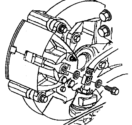 10. Remove the brake hose to caliper bolt from the brake caliper.