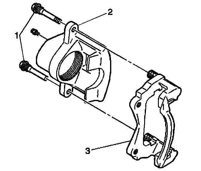 13. Remove the caliper pin bolts (1). Note the location of the caliper pin bolts.