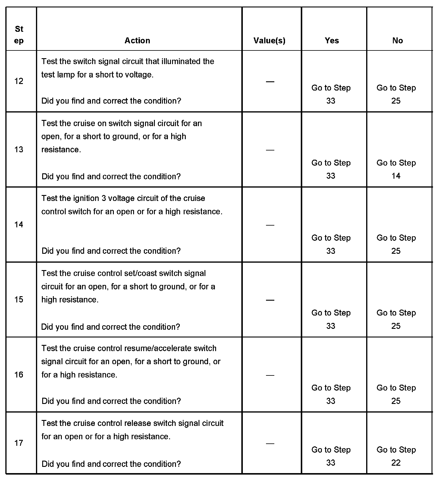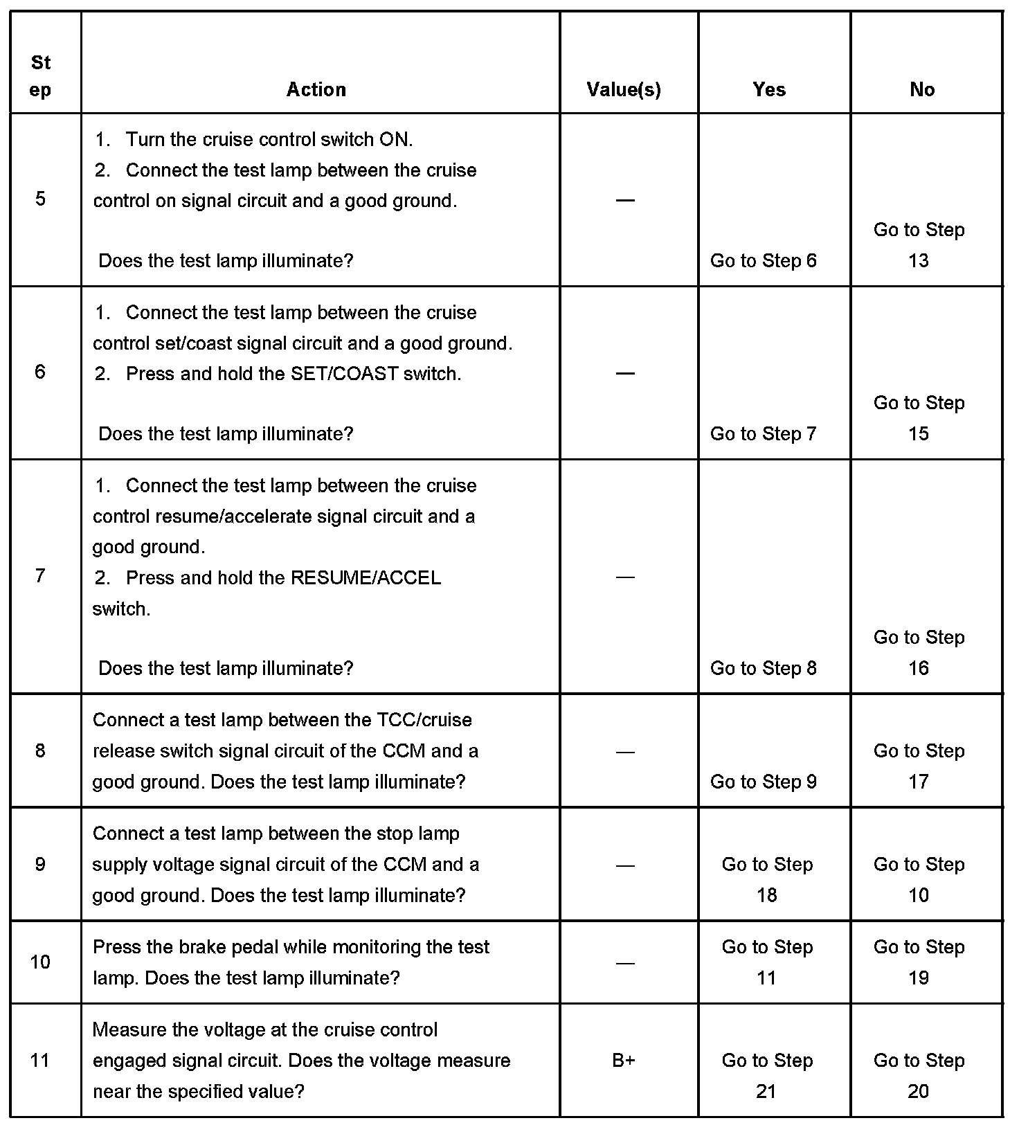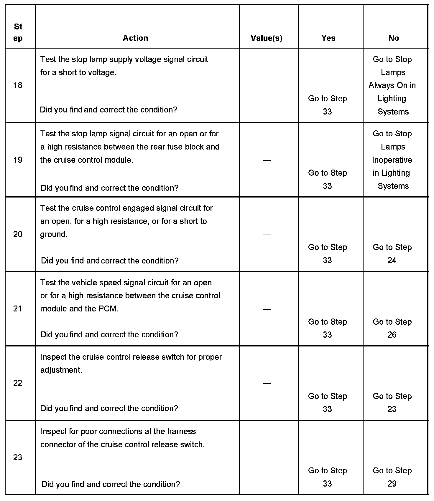 CRUISE CONTROL INOPERATIVE/MALFUNCTIONINGDIAGNOSTIC AIDS