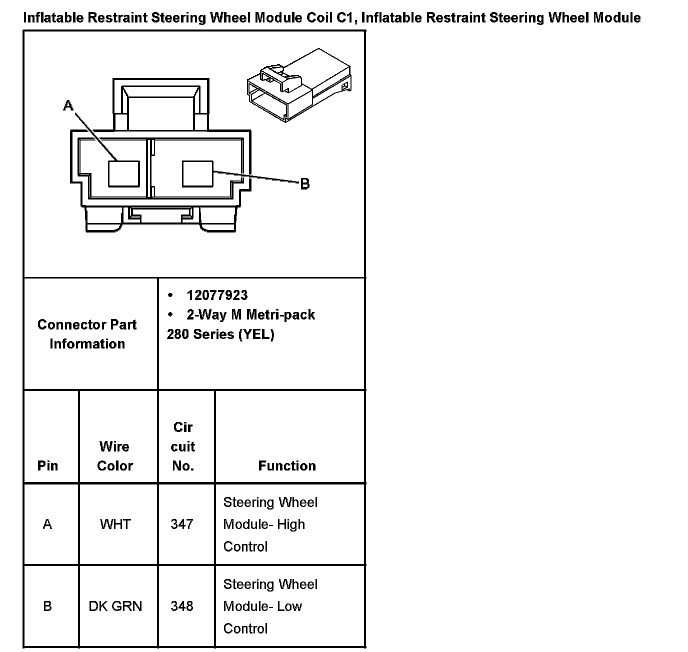 Inflatable Restraint Steering Wheel Module Coil C1, Inflatable Restraint Steering Wheel Module: