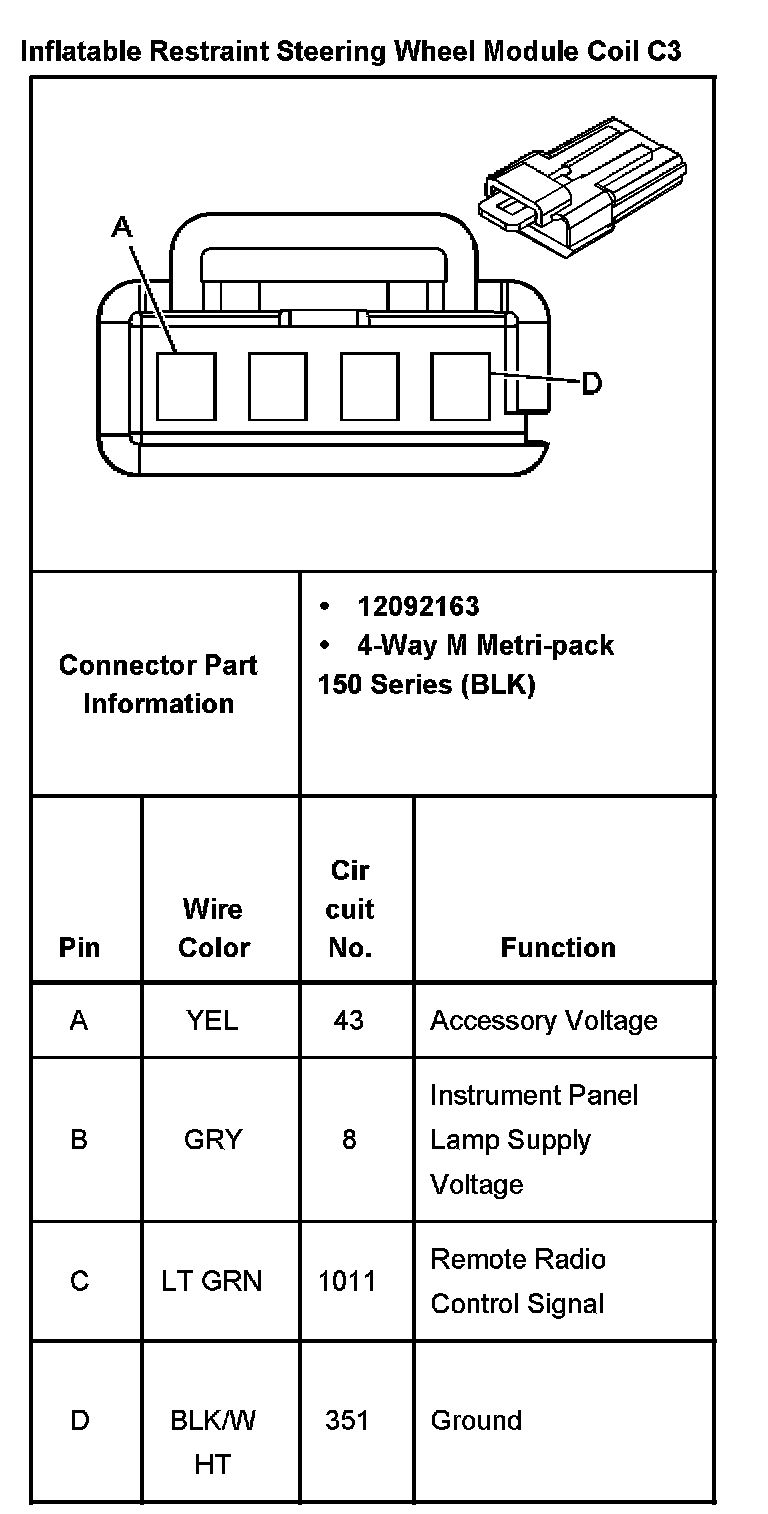 Inflatable Restraint Steering Wheel Module Coil C3: