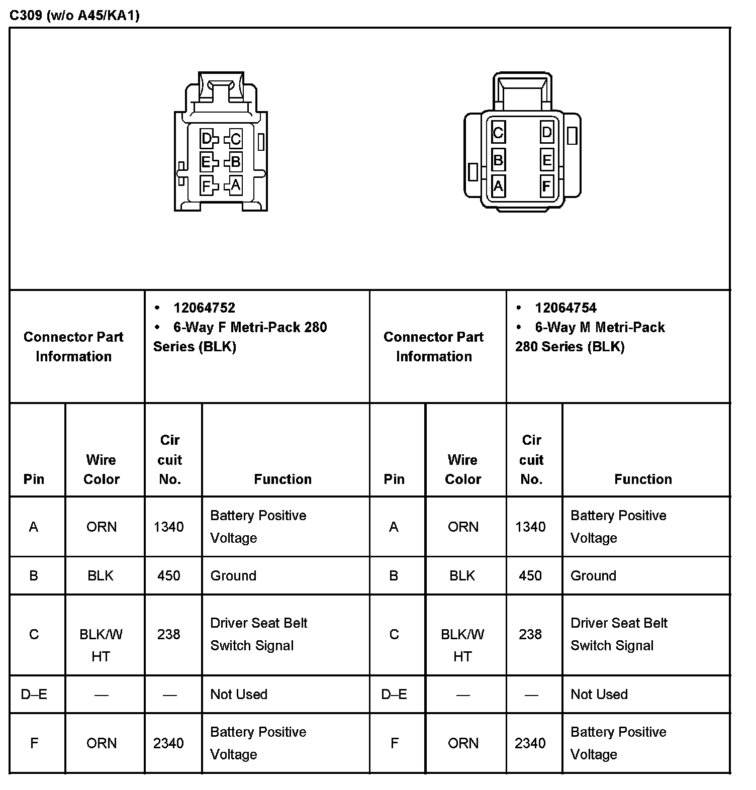C309 Without RPO Code A45/KA1: