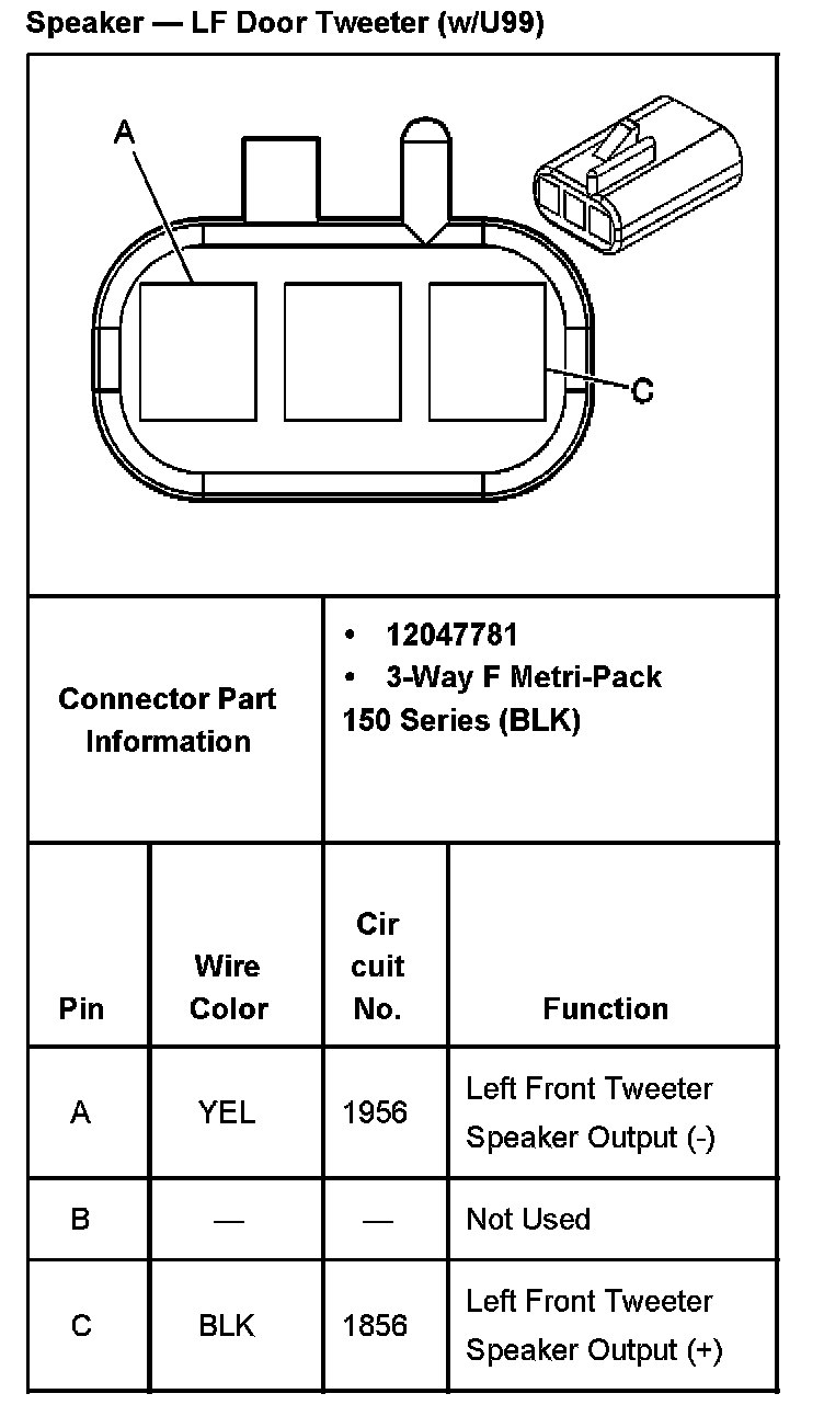 Speaker - LF Door Tweeter (With RPO Code U99)