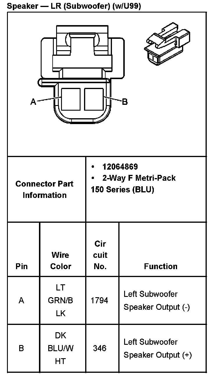 Speaker-LR (Subwoofer) (With RPO Code U99):