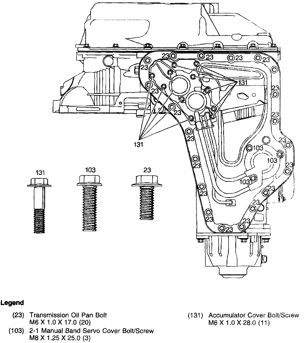 Bottom Pan, Accumulator Cover and Manual 2-1 Band Servo Cover Bolts: