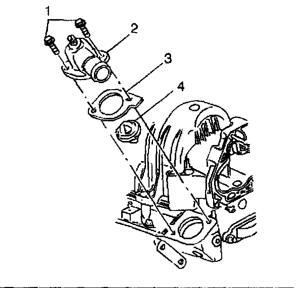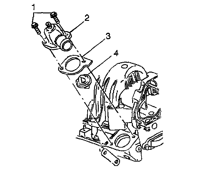 5. Remove the thermostat housing bolts (1).
