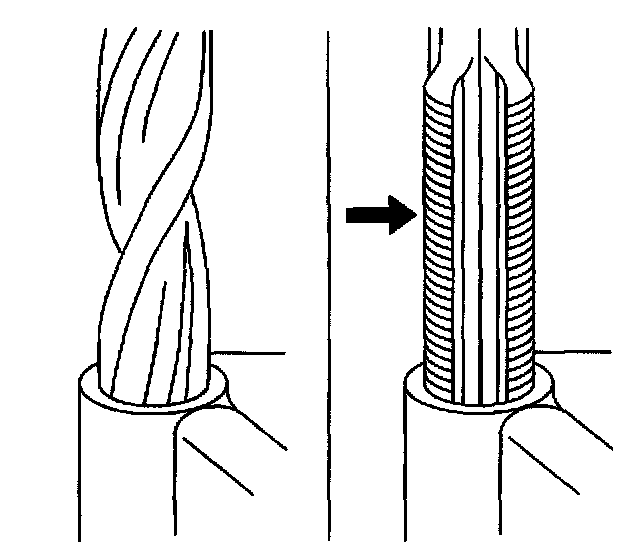 Important: Refer to the thread repair kit manufacturer's instructions regarding the size of the drill and which tap to use. Always avoid any buildup of chips. Back out the tap every few turns and remove the chips.