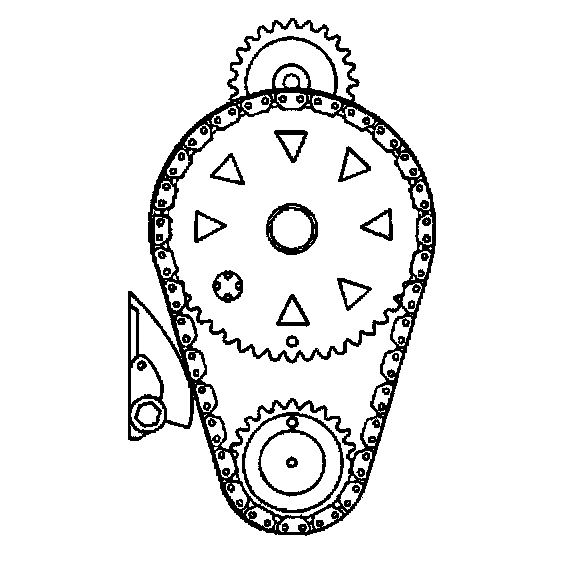 2. Install the timing chain on the sprockets. Align the timing marks.