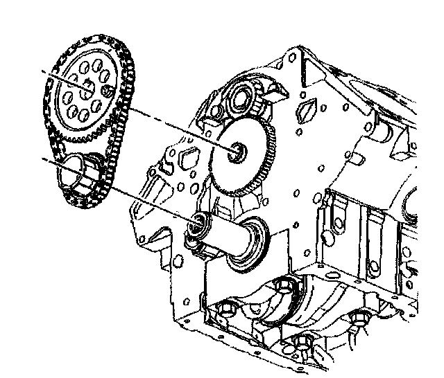3. Assemble the timing chain on the sprockets. Ensure that the timing marks are in the closest together position.