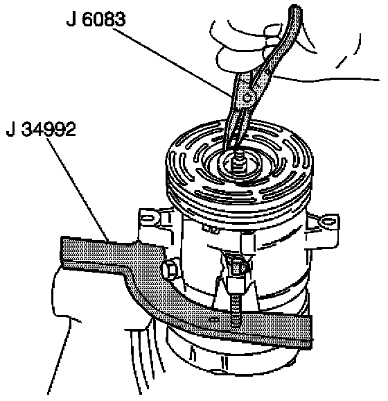 8. Install the J 33023-A on the front head of the compressor.