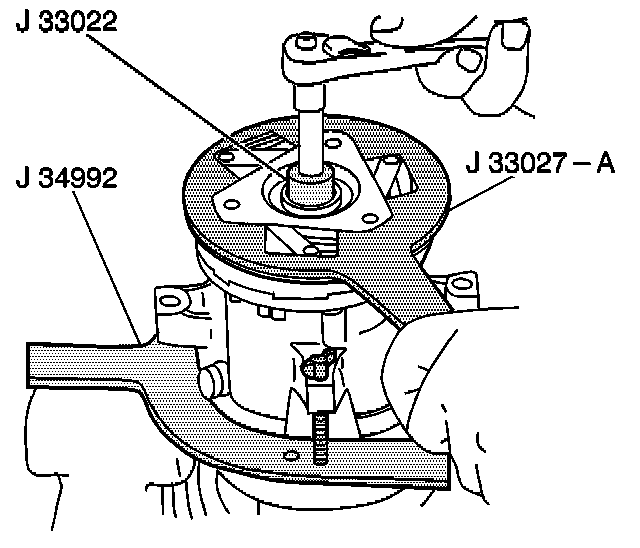 10. Hold the center screw of the J 33013-B with a wrench.
