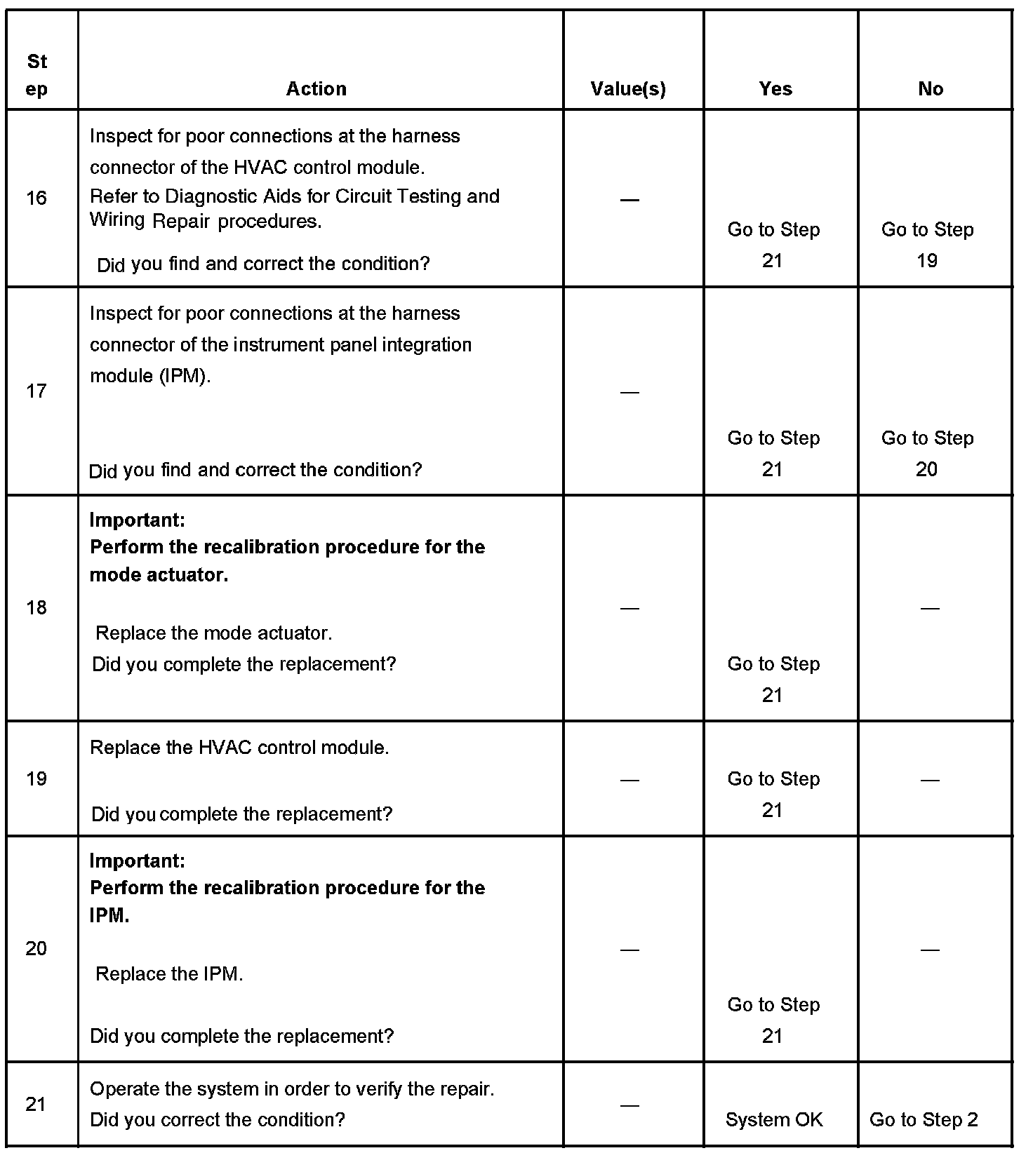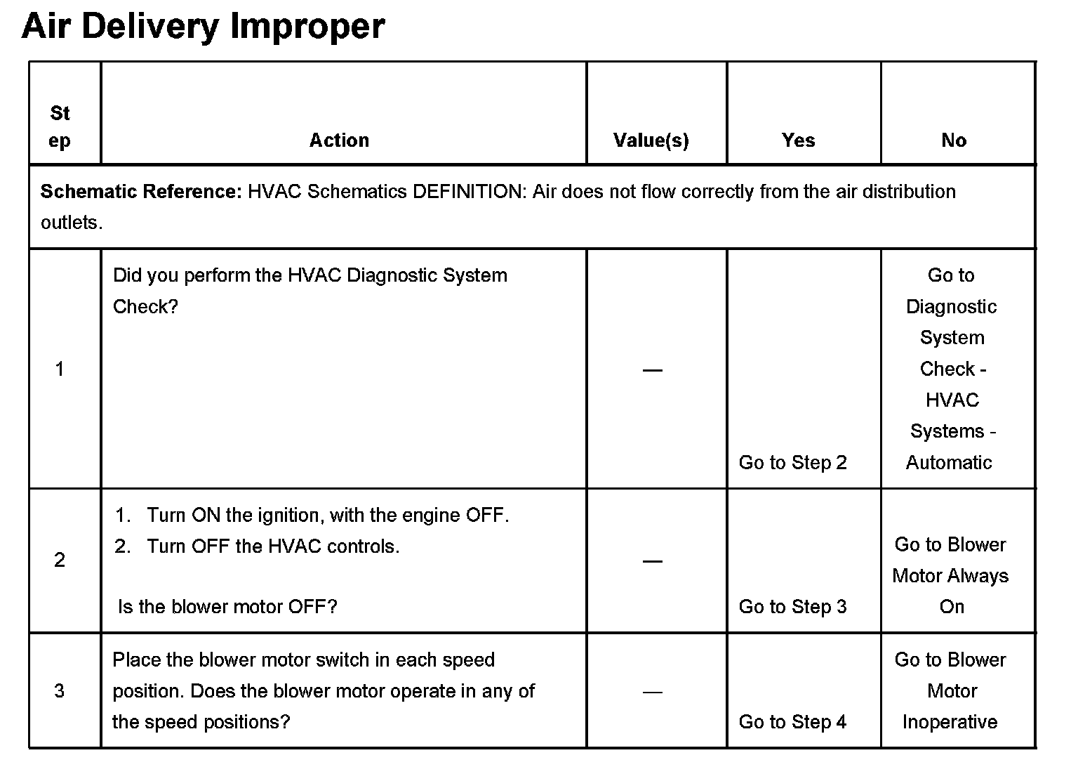 Symptoms - HVAC System - Automatic
