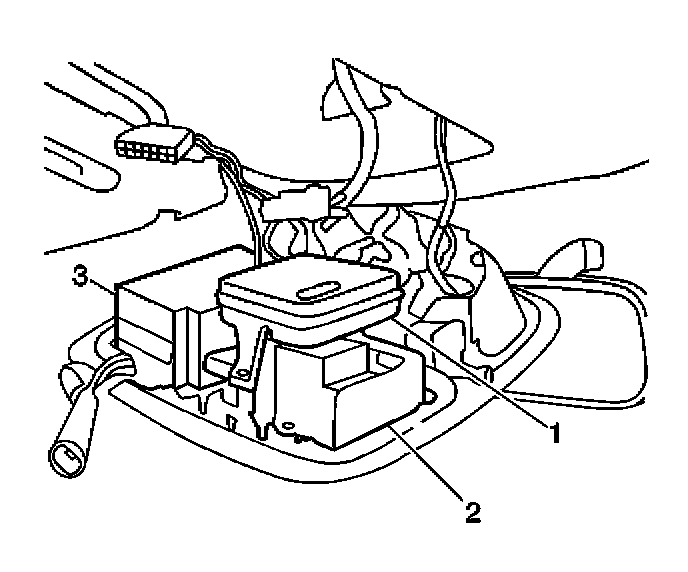 4. Remove the fasteners from the HUD control switch (1) or the image adjuster switch at the overhead console.
