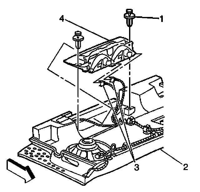 1. Remove the push-in retainers (1) from the center high-mounted stop lamp (4).