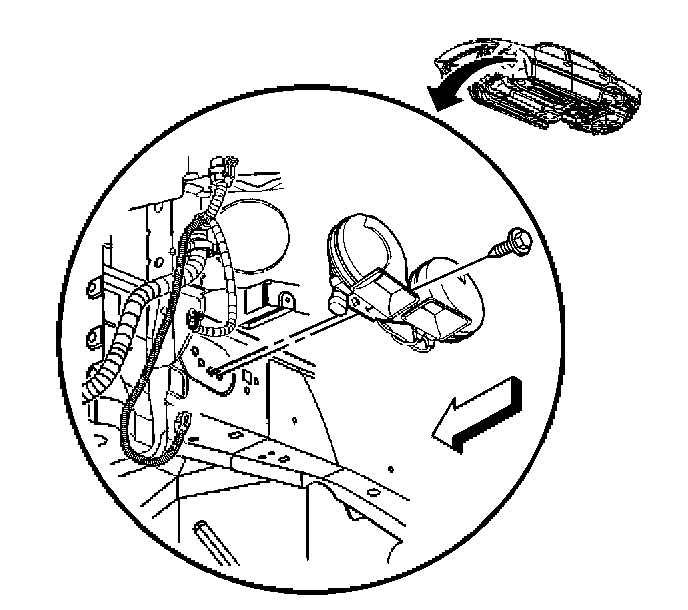 4. Remove the bolt retaining the horns to the left front frame rail.