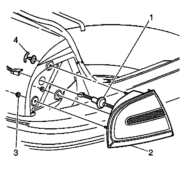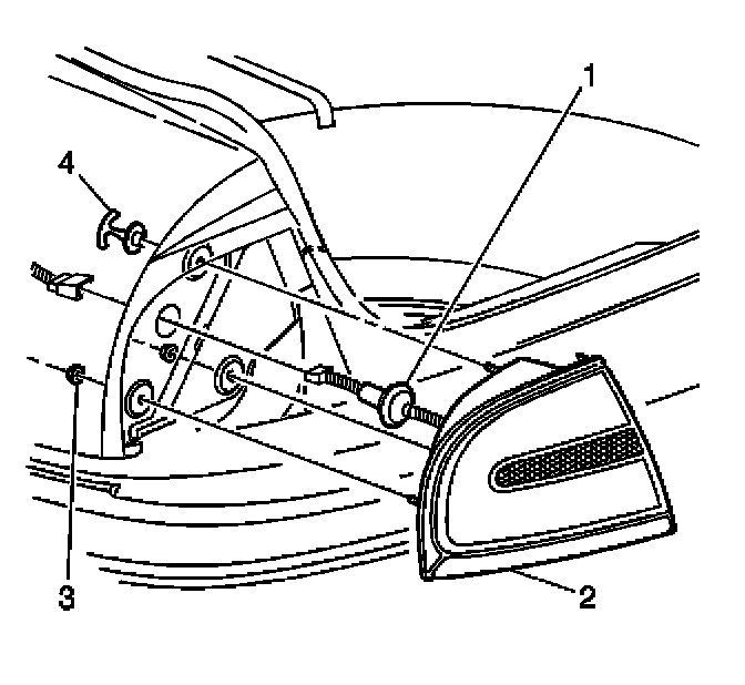 3. Remove the nuts (3) that retain the taillamp (2) to the vehicle.
