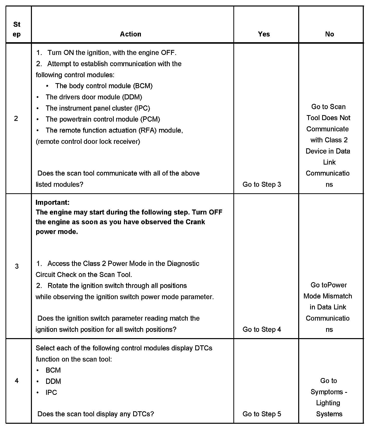 2. Lack of communication may be due to a partial malfunction of the class 2 serial data circuit or due to a total malfunction of the class 2 serial data circuit.
