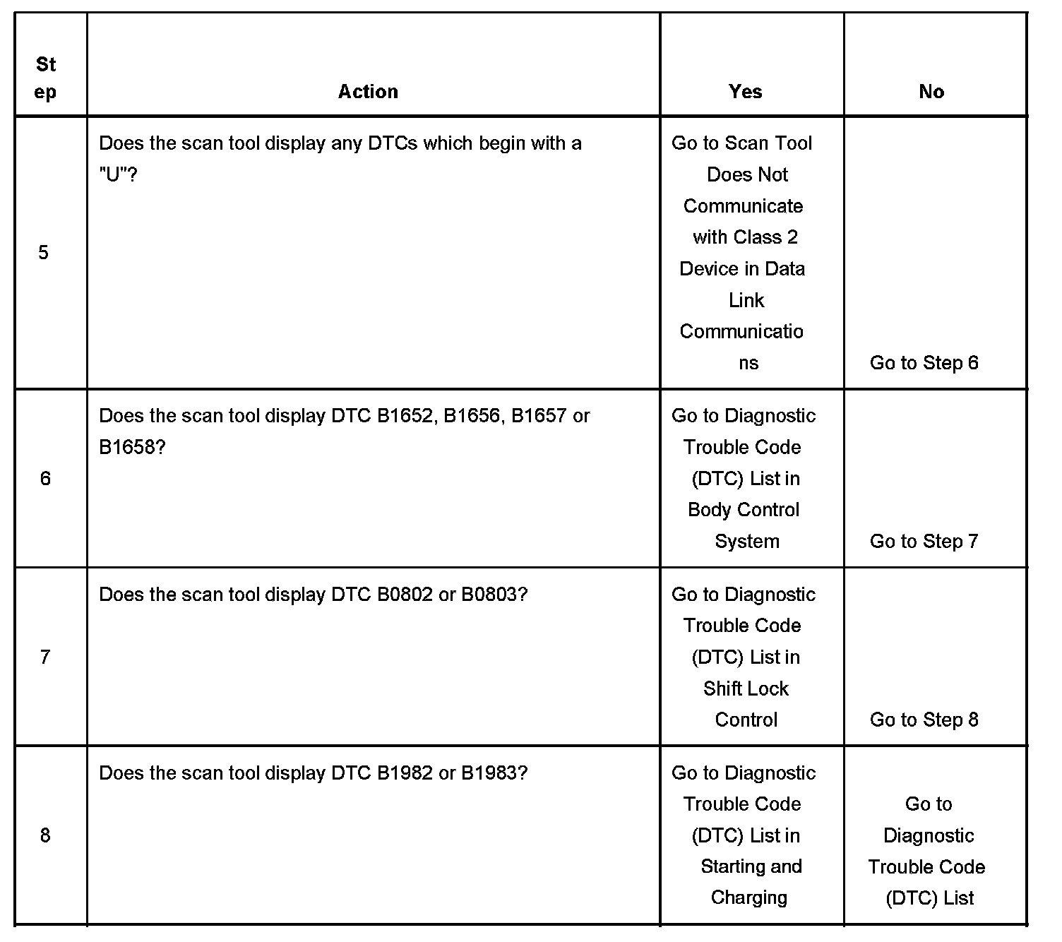 5. The presence of DTCs which begin with "U" indicate some other module is not communicating. The specified procedure will compile all the available information before tests are performed.
