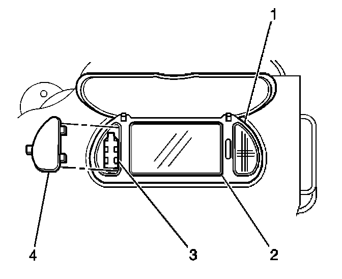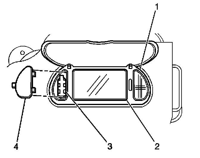 2. Install the vanity mirror lamp lens (4) into the vanity mirror assembly.