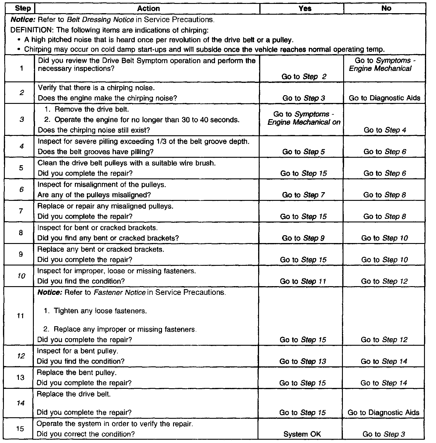 Drive Belt Chirping DiagnosisSteps 1-15: