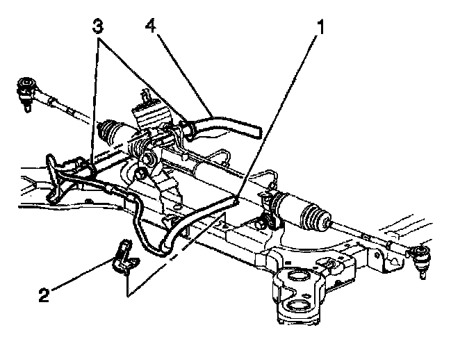 4. Remove the power steering return hose (4) from the power steering gear.