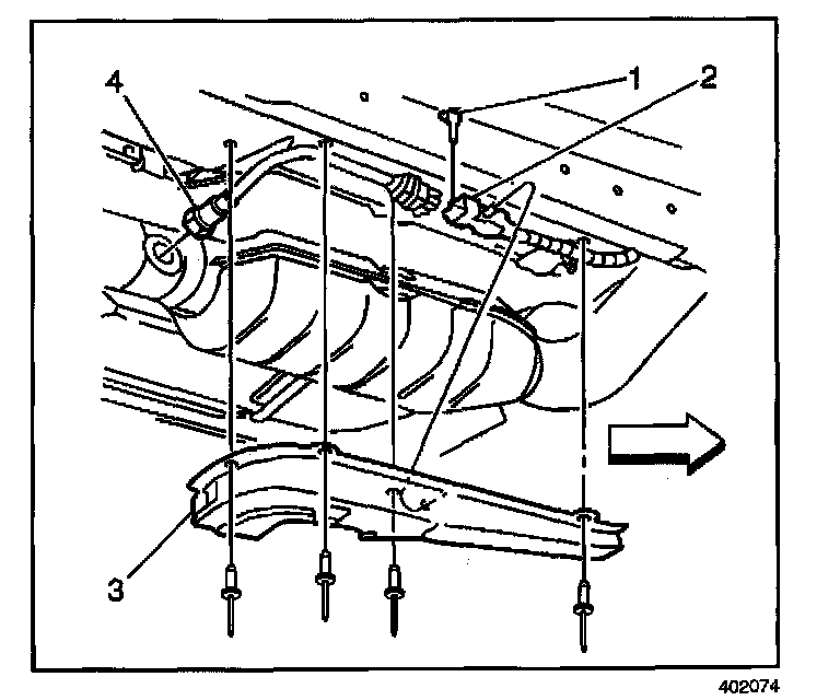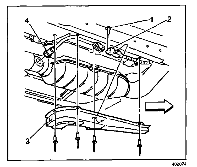 4. Install the front splash shield (3).