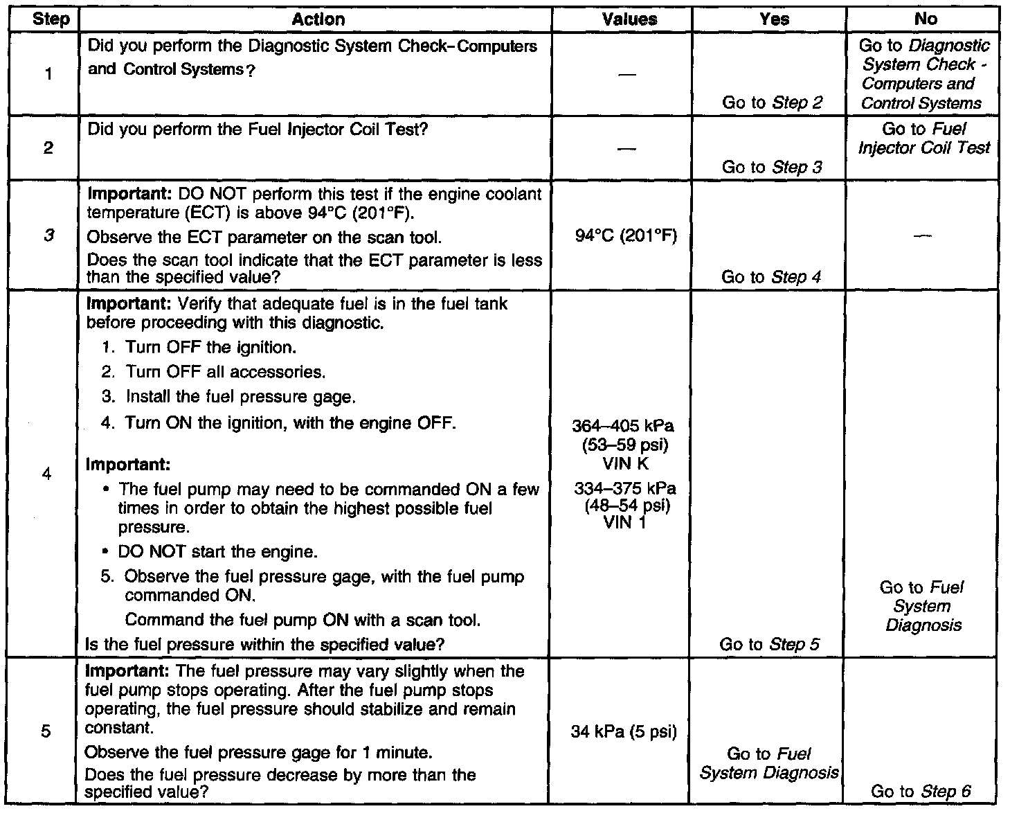 3. The engine coolant temperature (ECT) must be below the operating temperature in order to avoid irregular fuel pressure readings due to hot soak fuel boiling.