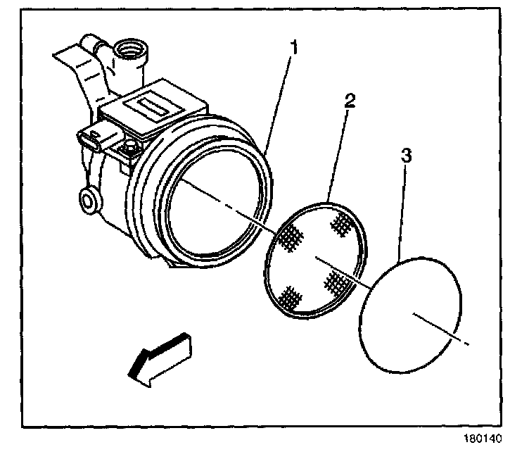 1. Install the throttle body air inlet screen (2) into the throttle body (1).
