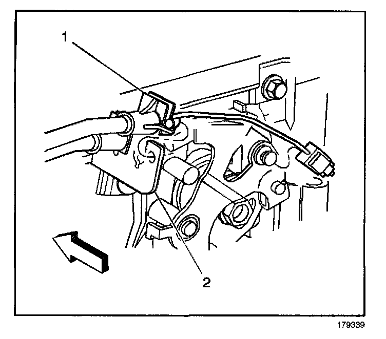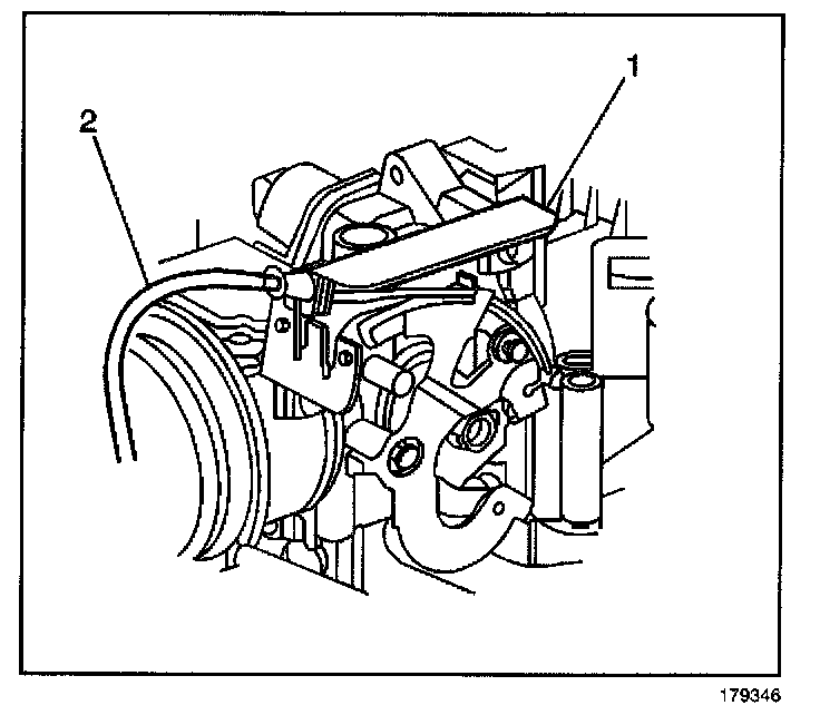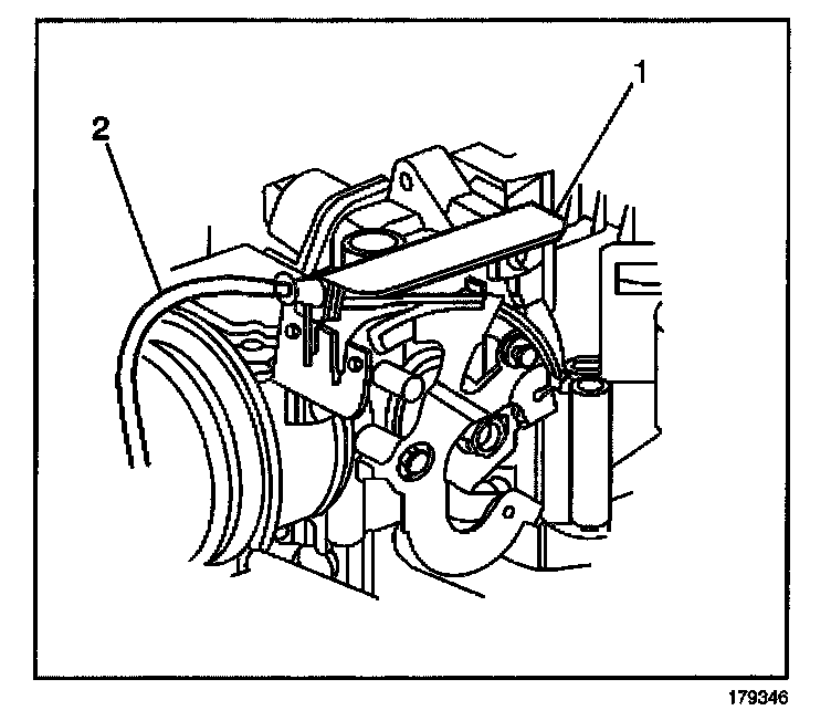5. Install the cruise control cable (1) to the bracket (2).