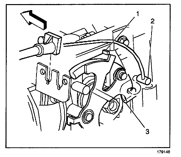 6. Remove the accelerator cable (2) from the throttle body lever (3).