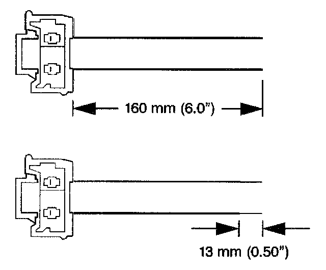 8. Strip 13 mm (0.5 in) of insulation from each of the connector wire leads.