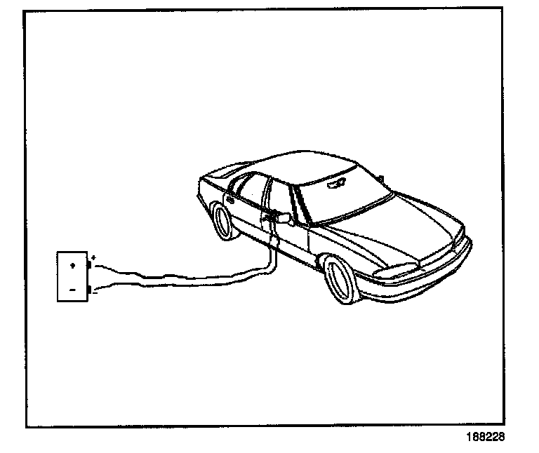 59. Place a power source, 12 V minimum/2 A minimum (i.e., a vehicle battery) near the shorted end of the harnesses.
