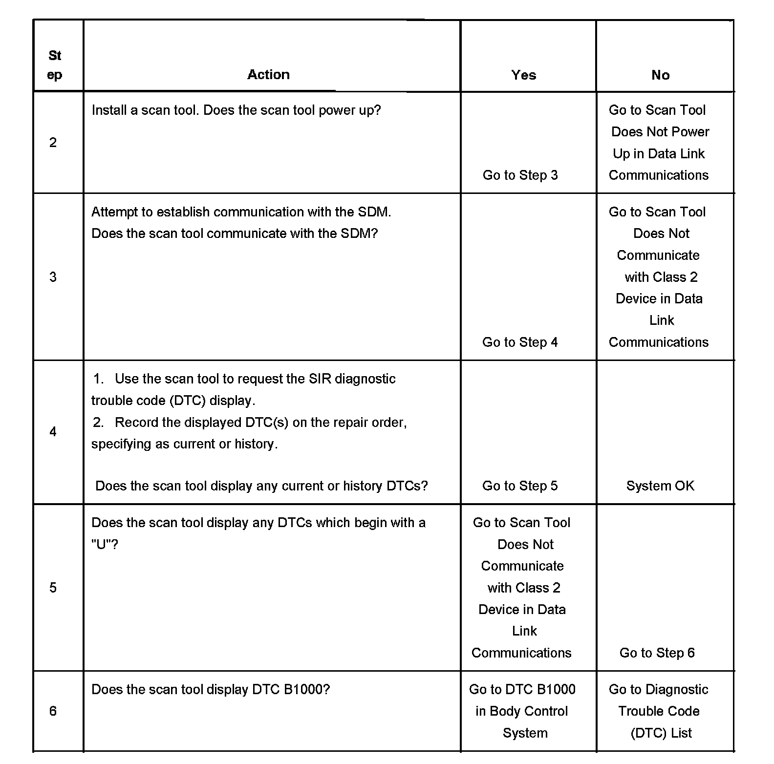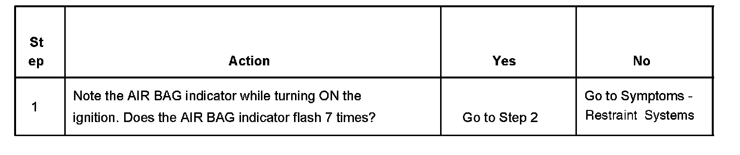 1. Refer to the diagnostic table as directed by a Diagnostic System Check - Restraint Systems. The diagnostic tables will help you to diagnose any SIR System malfunction. Bypassing these procedures may result in the following: