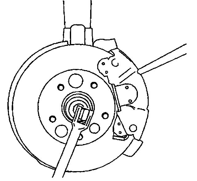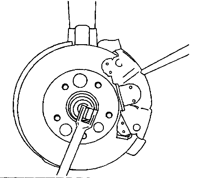 12. Install the drive axle nut by inserting drift or screwdriver into the caliper and rotor in order to prevent rotor from turning.