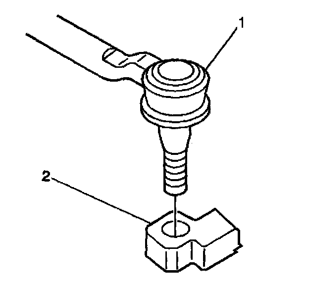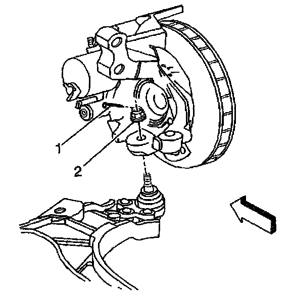 4. Install the outer tie rod (1) to the steering knuckle (2).