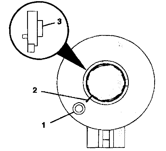 ^ alignment mark (2) on rotor flange cuff (3) for installation
