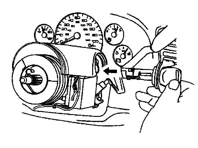 8. Remove the ignition lock cylinder by pulling the cylinder away from the steering column.
