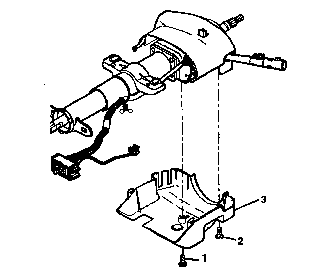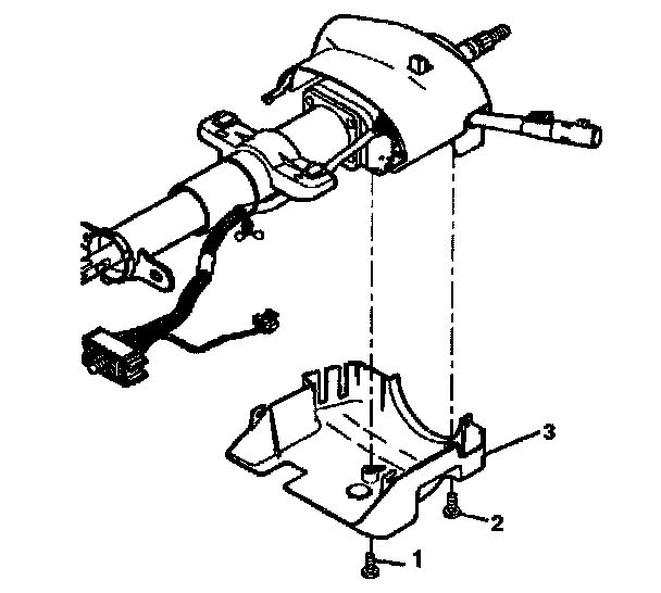 2. Install the lower trim cover (3) onto the steering column. Install 2 pan head tapping screws (1, 2) into the lower trim cover (3).