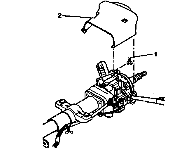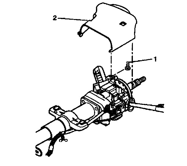 1. Install the upper trim cover (2) onto the steering column. install 1 TORX head screw (1) into the upper trim cover (2).