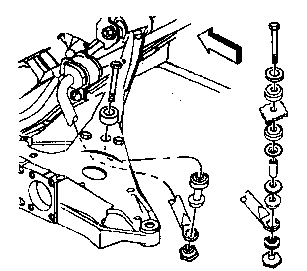 1. Install the stabilizer link insulator, spacer, nut and bolt.