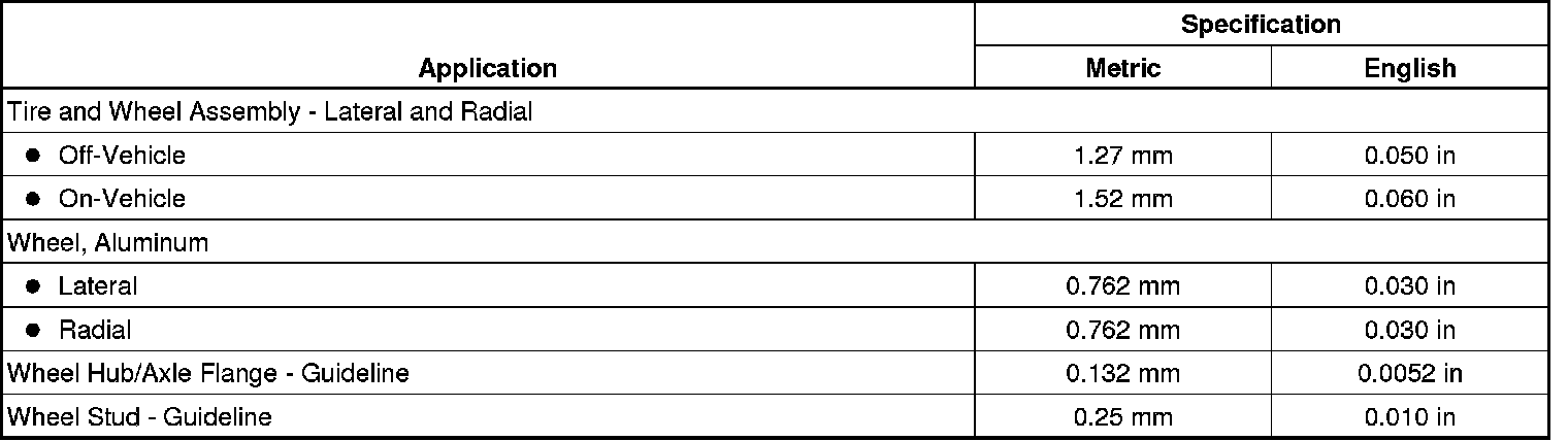 Tire and Wheel Runout Specifications