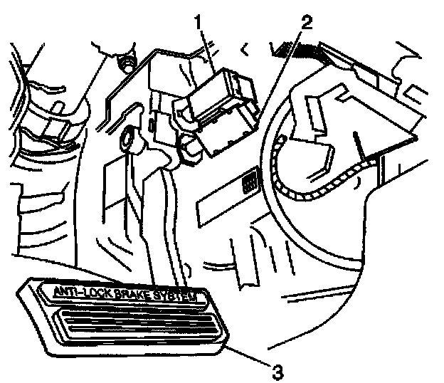 3. Insert the switch (1) into the retainer until the switch is fully seated against the brake pedal arm.