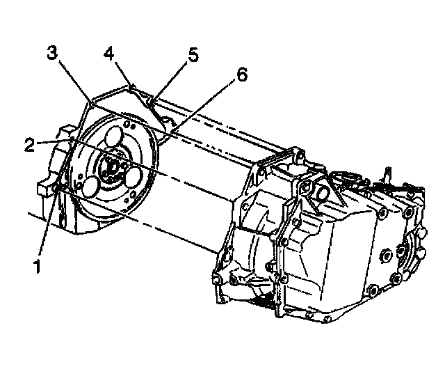 6. Install the transaxle case to engine bolts (1 and 6).