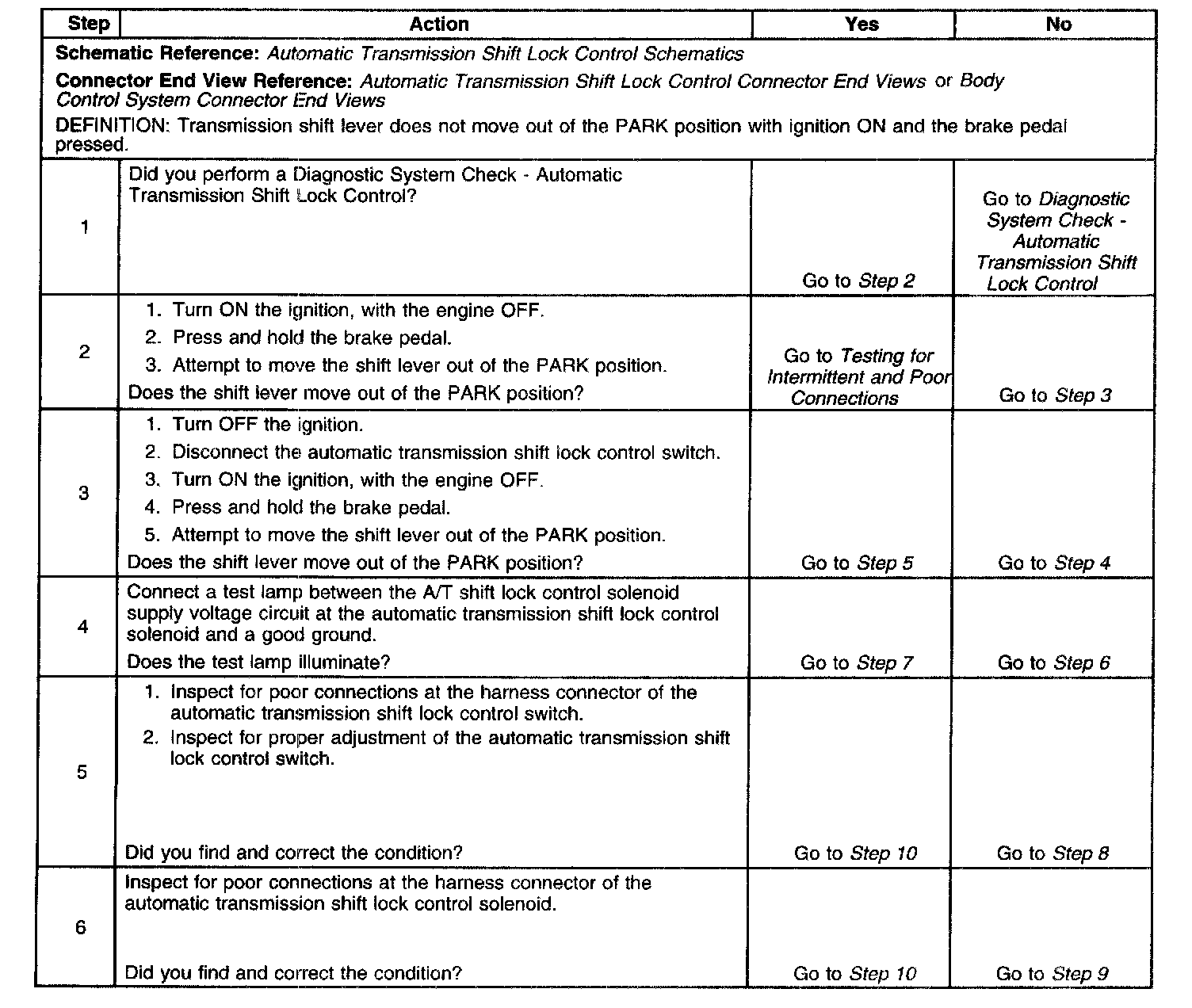 Shift Lever Does Not Move With Brake Pedal Depressed