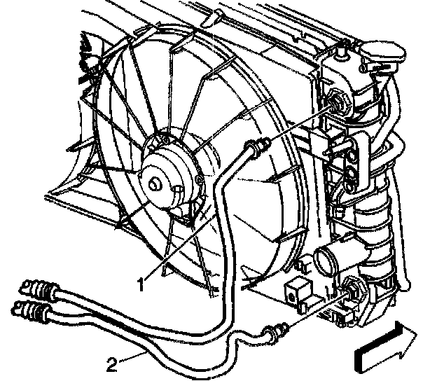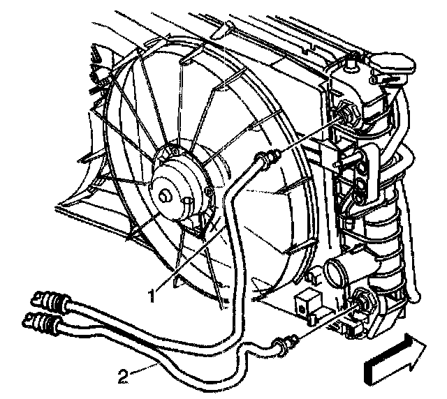 2. Push the transaxle oil cooler hoses (1, 2) into the radiator quick connect fittings, until a "click" is heard.