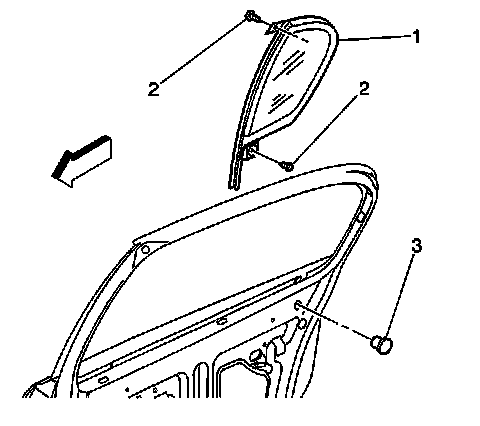 6. Remove the window (1). Refer to Window Replacement - Rear Door (Service and Repair) .